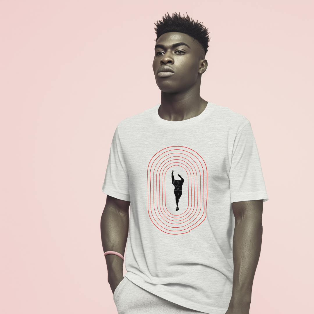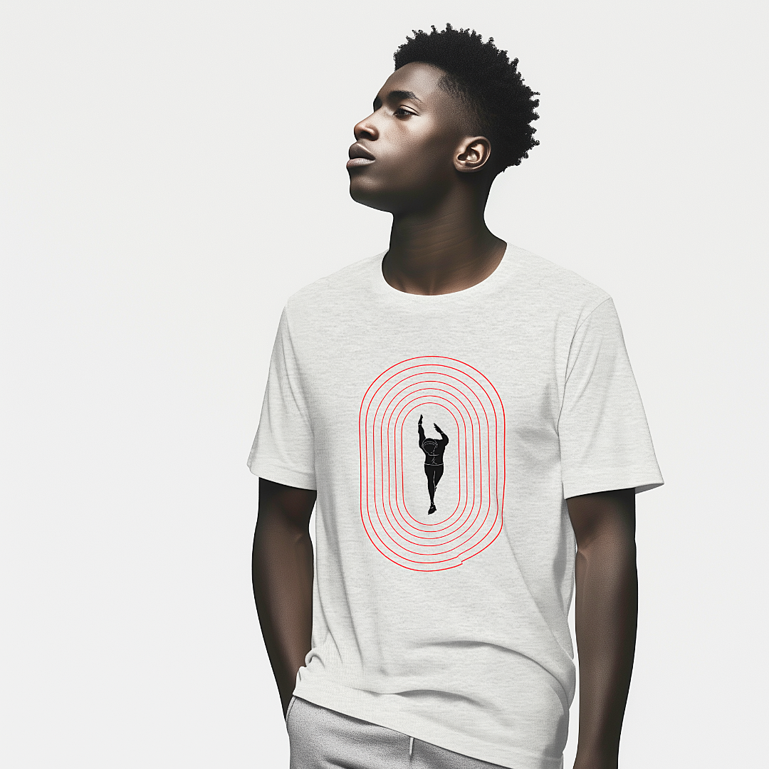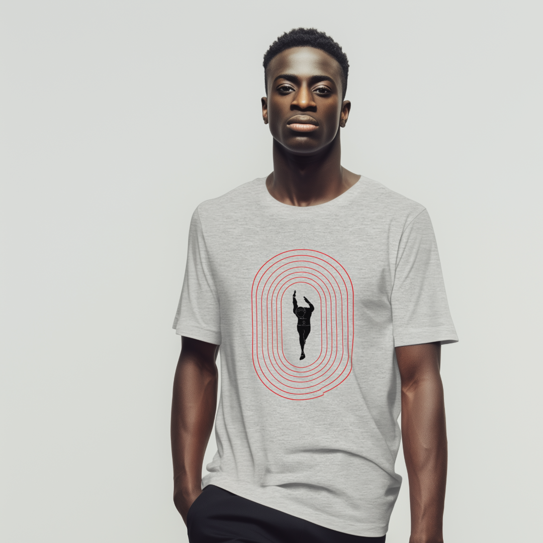 The Overdrive Phase Tee design captures the intensity of sprint racing and the artful expression of power in the sport of track and field.