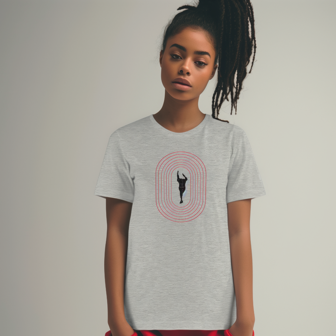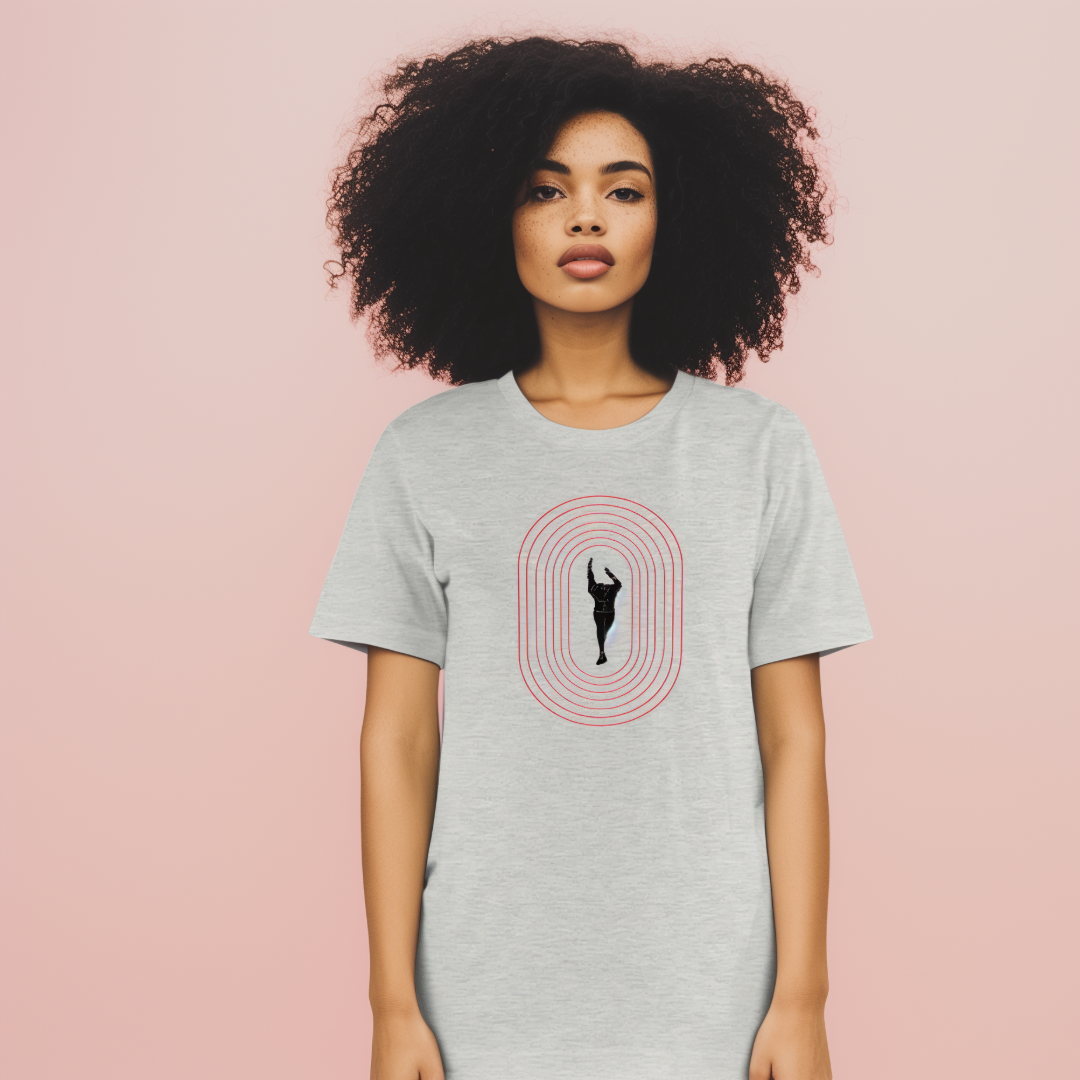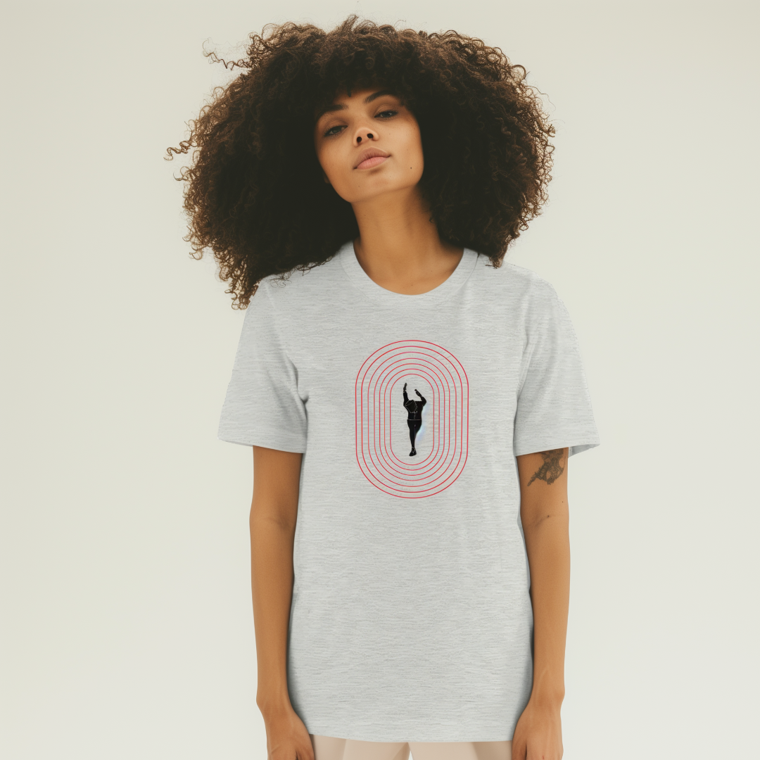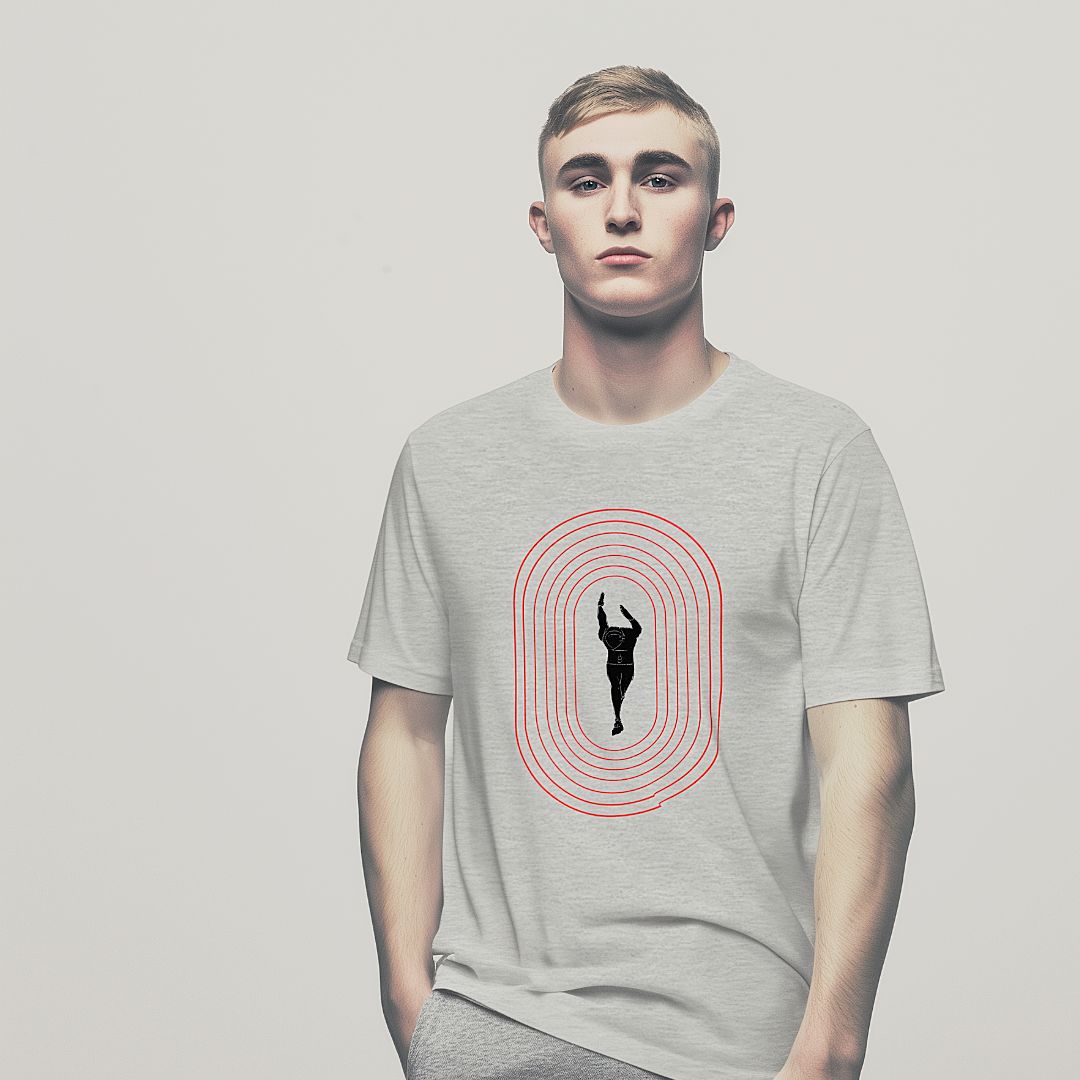 The Overdrive Phase Tee design captures the intensity of sprint racing and the artful expression of power in the sport of track and field.